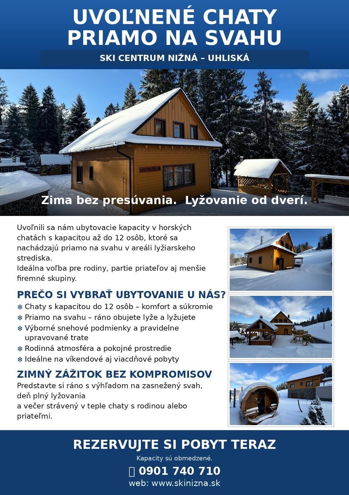viacUvoľnili sa nám ubytovacie kapacity v horských chatách s kapacitou až do 12 osôb, ktoré sa nachádzajú priamo na svahu v areáli lyžiarskeho strediska. Ideálna voľba pre rodiny, partie priateľov aj menšie firemné skupiny.